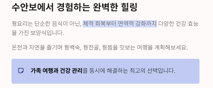 수안보 꿩요리는 단순히 맛있는 음식이 아니라, 체력 회복, 면역력 강화, 혈액 순환, 피부 건강, 소화기 건강 등 다양한 건강 효능을 가진 보양식입니다. 실제 체험 후기를 보면, 맛과 건강을 동시에 챙길 수 있어 가족 여행이나 건강 관리용 식사로 강력 추천할 만합니다.