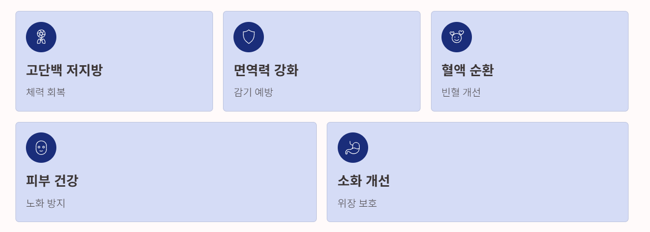 - 효능 포인트: 혈액 순환 개선, 빈혈 예방, 피로 완화