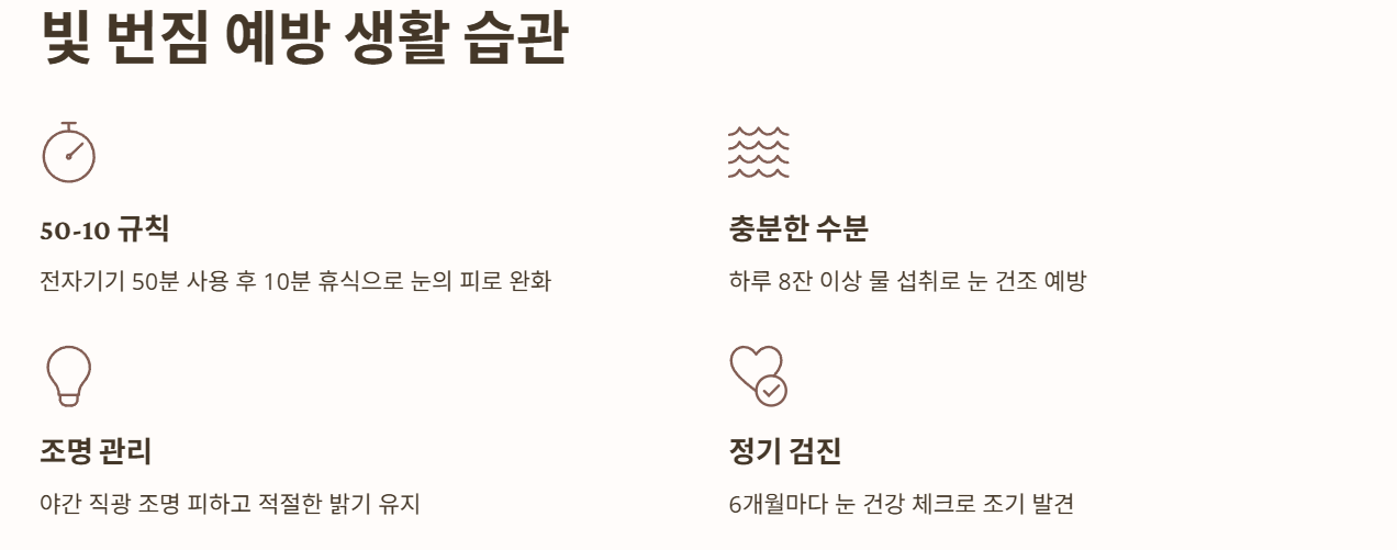 생활 습관까지 관리하면 눈의 피로와 빛 번짐을 줄이고, 시력을 장기적으로 보호할 수 있습니다.