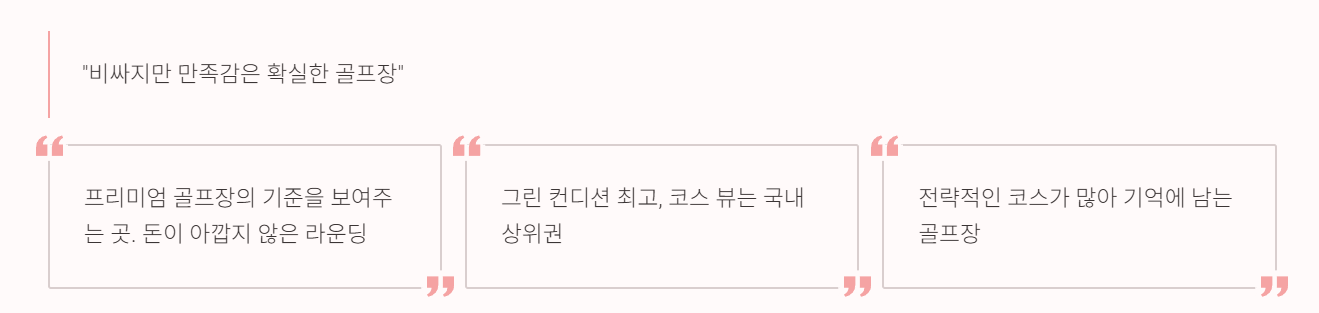 “프리미엄 골프장의 기준을 보여주는 곳. 돈이 아깝지 않은 라운딩.”