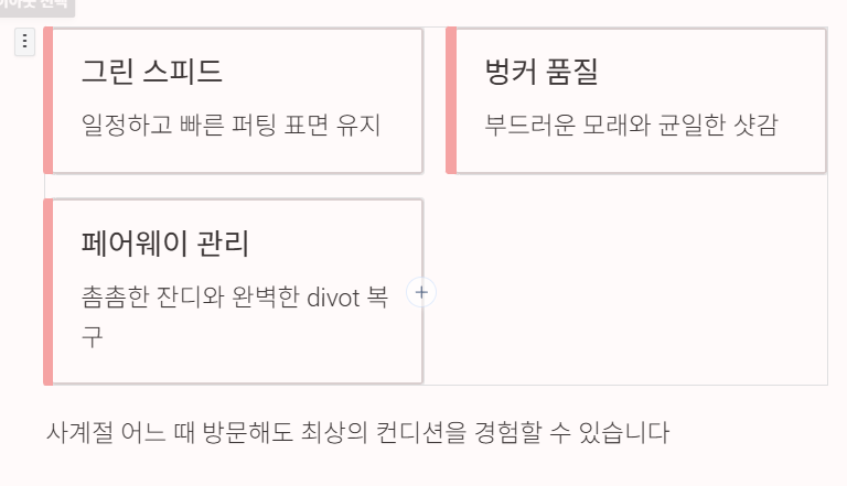 가격대가 타 골프장보다 높은 편이지만, 골프 자체의 ‘퀄리티’를 중요하게 생각한다면 충분히 만족할 수준의 골프장입니다.
