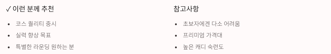- 캐디 숙련도가 높은 편으로 라인 읽기·코스 공략 팁이 정확함