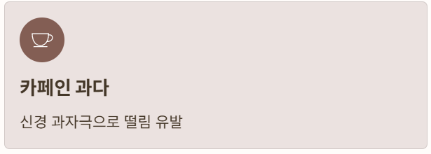 해결법: 하루 커피 1~2잔 이하로 줄이기, 물 섭취 늘리기.
