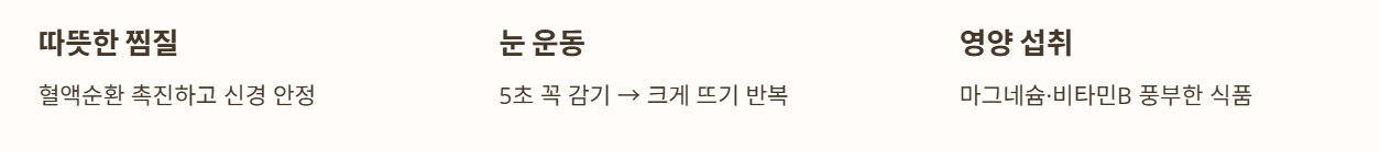 해결법: 신경과·안과 진료, 근전도 검사 등.
