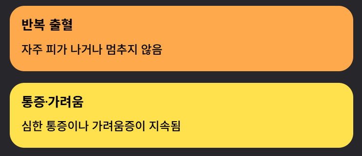 - 출혈 반복