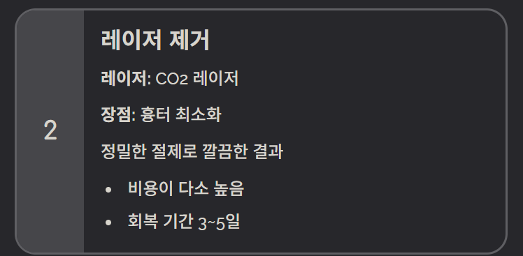 ⚠ 집에서 제거는 위험 가능성이 있어, 크기가 크거나 민감한 위치는 반드시 전문가 시술 권장