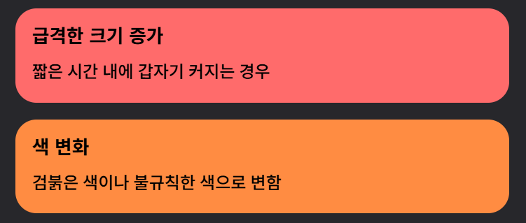 아래 증상이 있다면 단순 쥐젖이 아닐 가능성이 있으므로 피부과 방문 필수입니다.