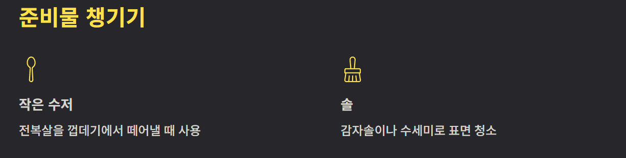 이 기본 준비만 갖추면 누구나 집에서 전복 손질을 쉽게 진행할 수 있습니다.