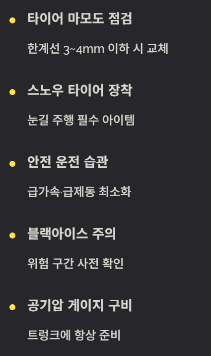 8️⃣ 겨울철 타이어 관리 추가 팁