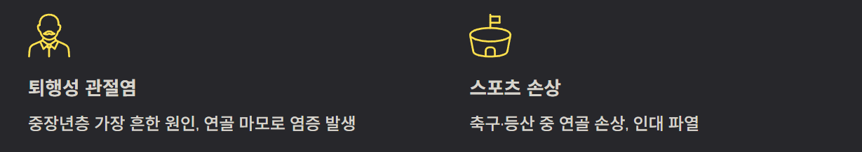 - MRI : 연골·인대·반월상연골판 손상 여부 확인