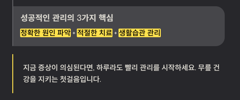 결론 – 무릎 물찬 증상, 초기에 관리하면 회복이 훨씬 빠릅니다