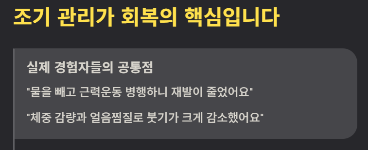 즉, 원인 파악 + 적절한 치료 + 생활관리가 핵심이라는 공통점을 확인할 수 있습니다.