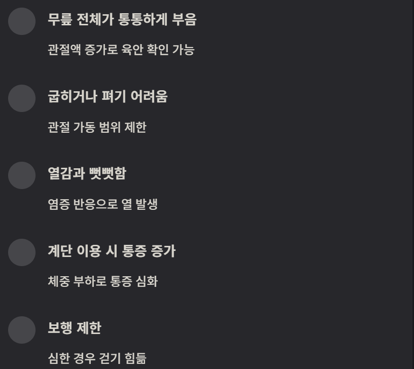 활액막에 염증이 생겨 관절액이 급격하게 증가하는 경우입니다.
