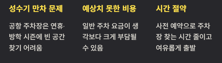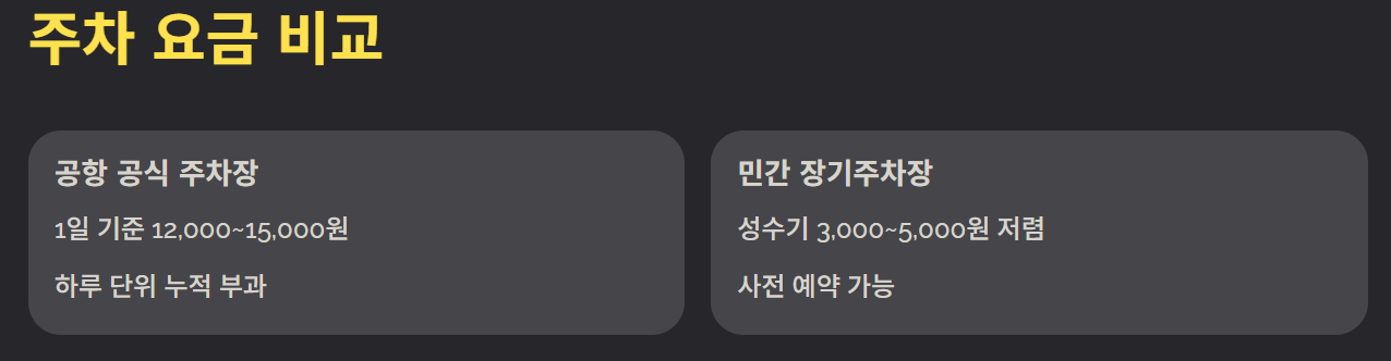 특히 성수기에는 공항 주차장보다 3,000~5,000원 정도 저렴한 경우도 많습니다.