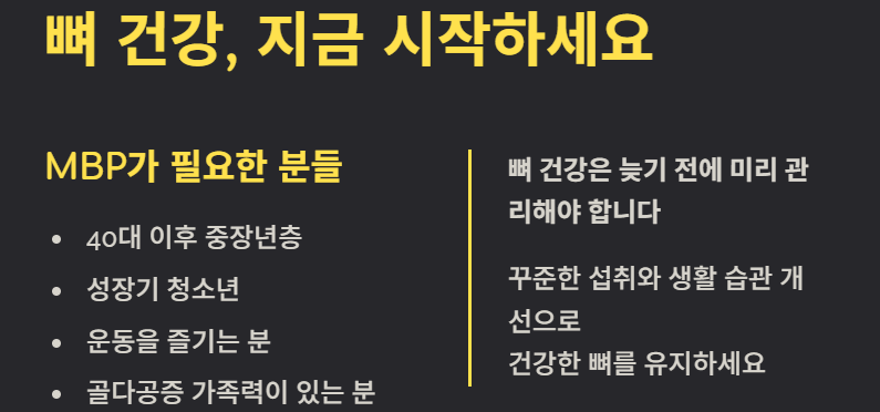🟦 결론 뼈 건강을 관리하고 싶다면 MBP는 좋은 선택