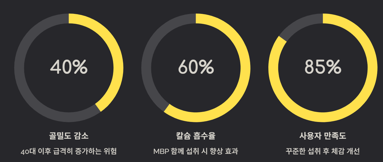 단순히 칼슘을 섭취한다고 해서 뼈로 잘 전달되는 것은 아닙니다. MBP는 칼슘이 뼈에 침착되는 과정을 도와 칼슘 보충제와 함께 섭취하면 시너지가 큽니다.