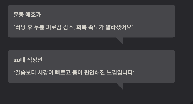"칼슘보다 몸에서 바로 느껴지는 편안함이 있어 꾸준히 섭취 중입니다."