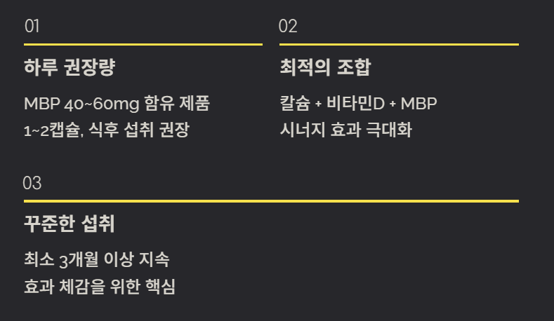 - 예, MBP + 칼슘 + 비타민D 조합이 가장 효과적