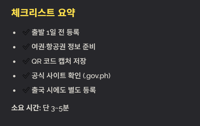 결론: 필리핀 입국 전 필수, 꼭 미리 준비하자