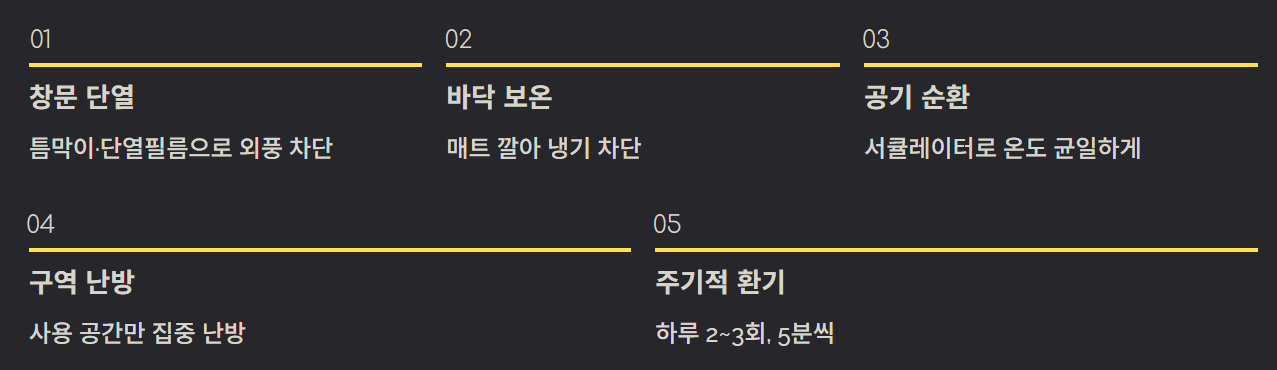 - 문 닫고 난방 – 사용 공간만 난방하면 효율 증가