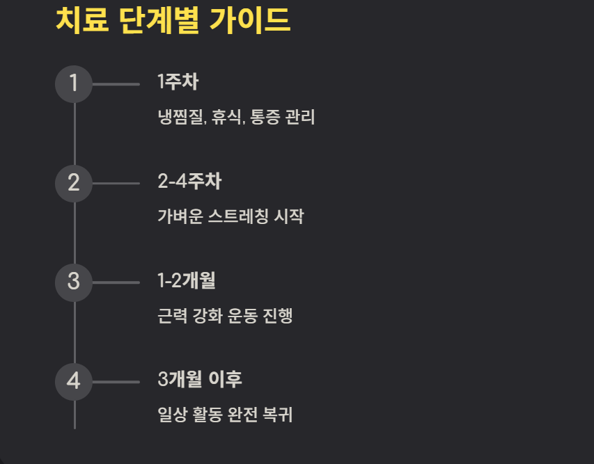 완전 파열이나 3개월 이상 증상 지속 시 전문의 상담이 필요합니다.