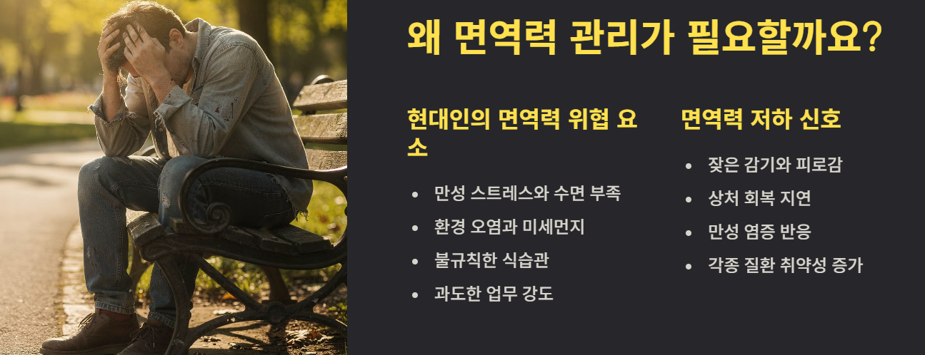 현대인에게 면역력 관리는 선택이 아닌 필수입니다. 일상 속 스트레스, 수면 부족, 환경 오염 등으로 면역체계가 약해지면서 감기, 피로, 각종 질환에 취약해지는 경우가 많습니다. 그래서 많은 분이 면역력을 높이는 영양제를 통해 건강을 보완하고자 합니다.