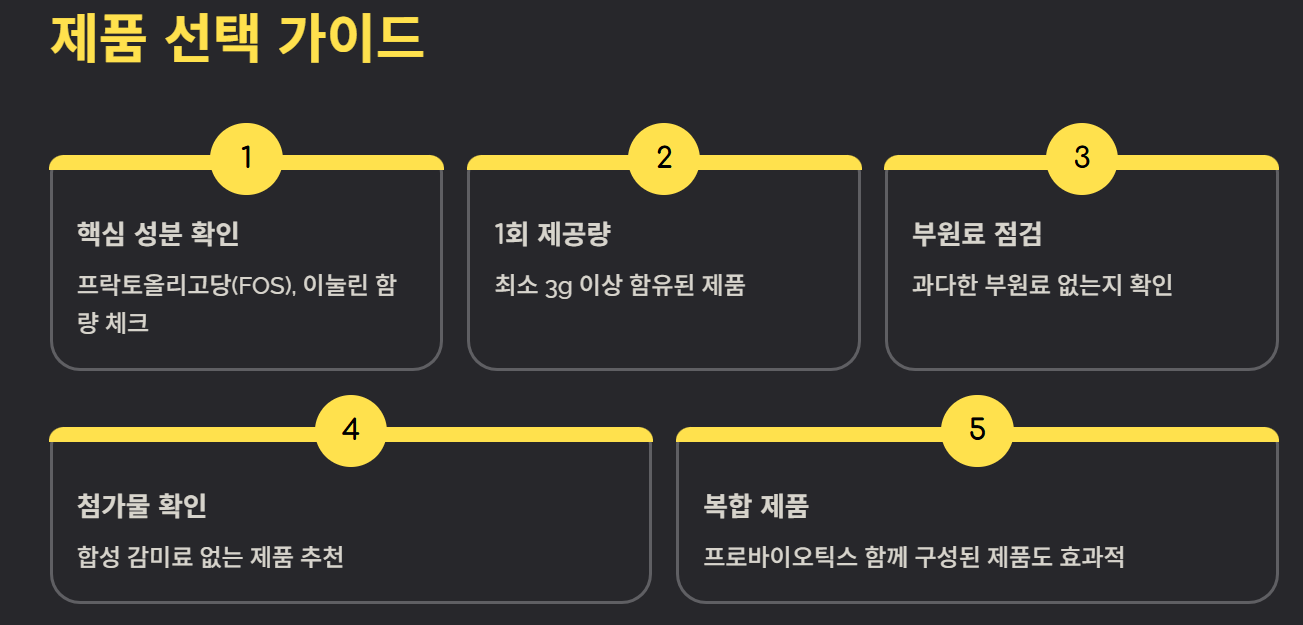 프리바이오틱스를 고를 때는 아래 요소를 확인하면 좋습니다.