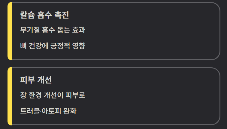 변비가 있는 사람들에게 특히 효과적입니다. 대장에서 발효되며 배변량을 늘리고 장 운동을 활성화합니다.