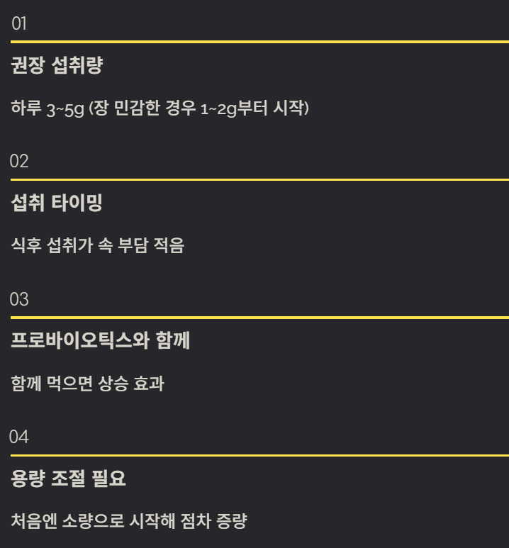 - 장이 민감한 사람은 1~2g부터 천천히 늘리기