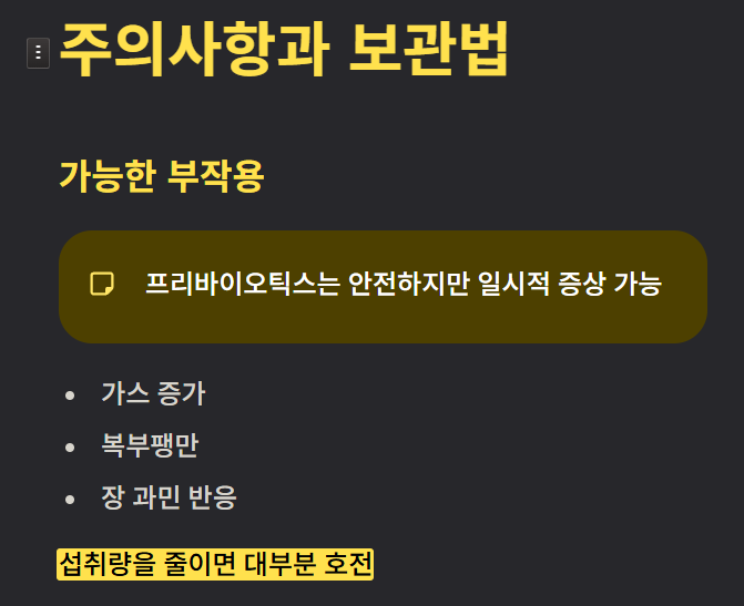 - 처음 섭취 시 가스, 복부팽만이 생길 수 있으므로 용량 조절 필요