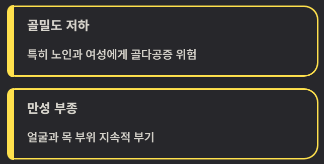 갑상선기능저하증을 방치하면 심혈관 질환, 고콜레스테롤, 부종, 신경계 문제 등 합병증이 발생할 수 있습니다. 특히 노인과 여성은 골밀도 저하와 기억력 감퇴가 나타날 수 있으므로 정기적인 검진이 필요합니다.