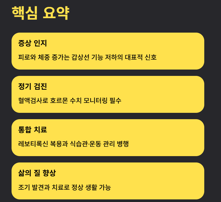 - 피로와 체중 증가가 갑상선 기능 저하의 대표적 신호