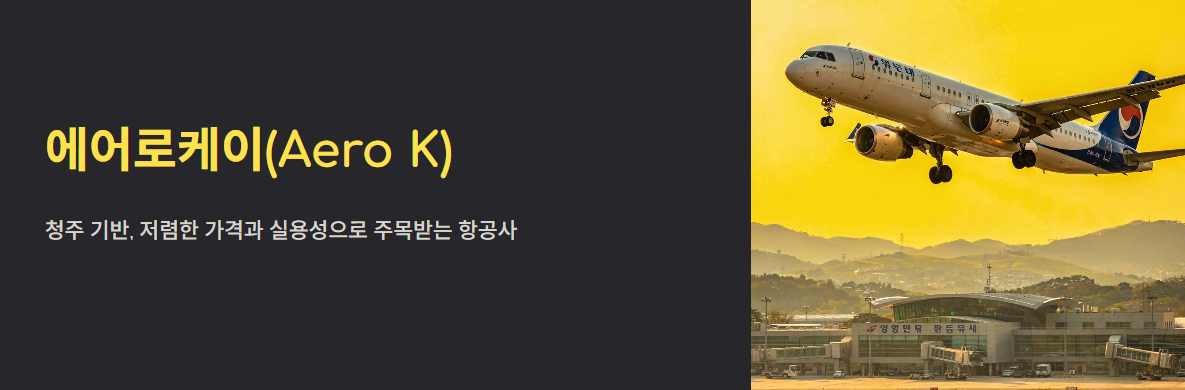에어로케이는 충청권을 중심으로 한 **신생 저비용항공사(LCC)**로, 2021년 본격 취항한 이후 청주공항을 기반으로 일본·동남아 등 인기 노선들을 확장하고 있습니다. 대형 항공사에 비해 가격 경쟁력이 매우 뛰어나고, 필요한 서비스만 선택해 추가할 수 있어 가성비 중심 여행자들에게 최적화된 구조를 갖추고 있습니다.