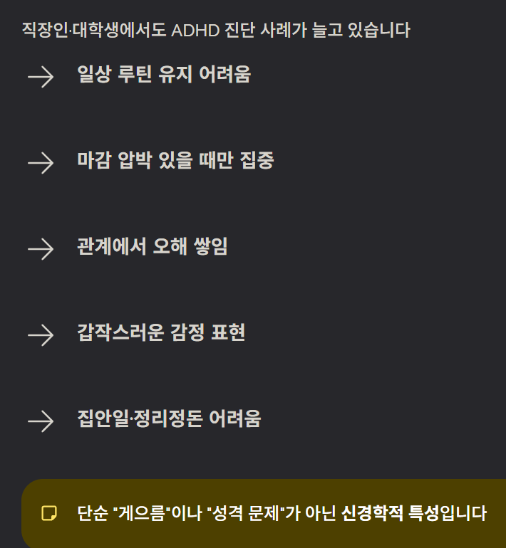 요즘은 직장인·대학생에서도 ADHD 진단 사례가 늘고 있습니다.