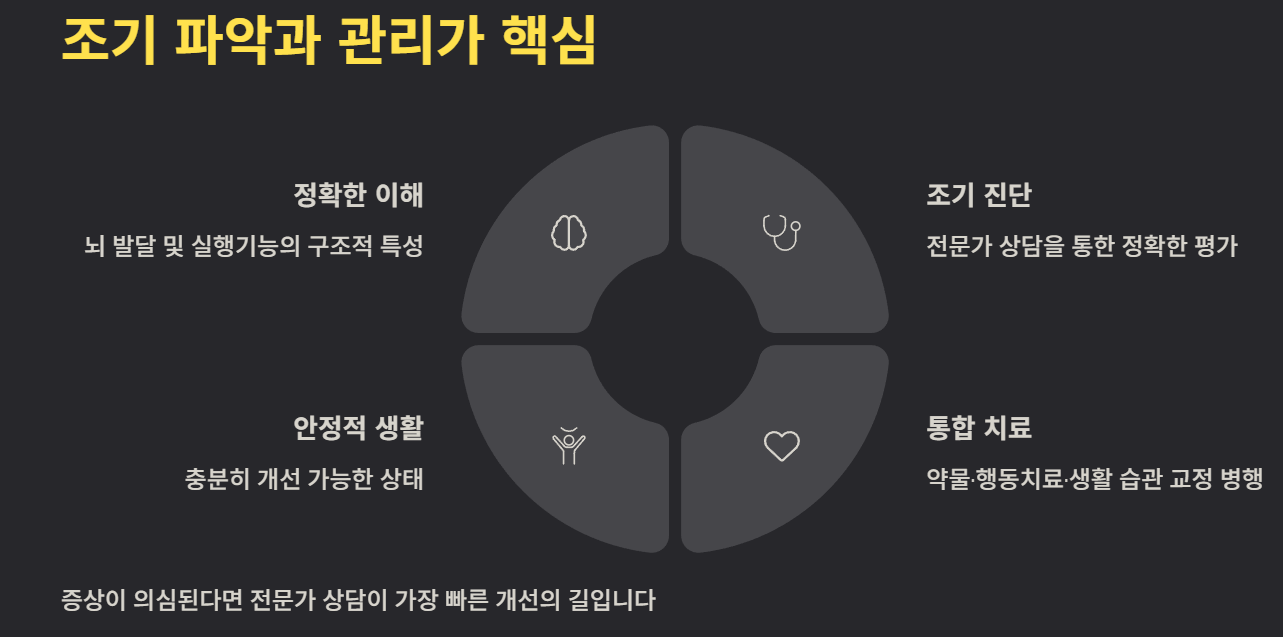 ✔ 결론 ADHD는 조기 파악과 관리가 핵심