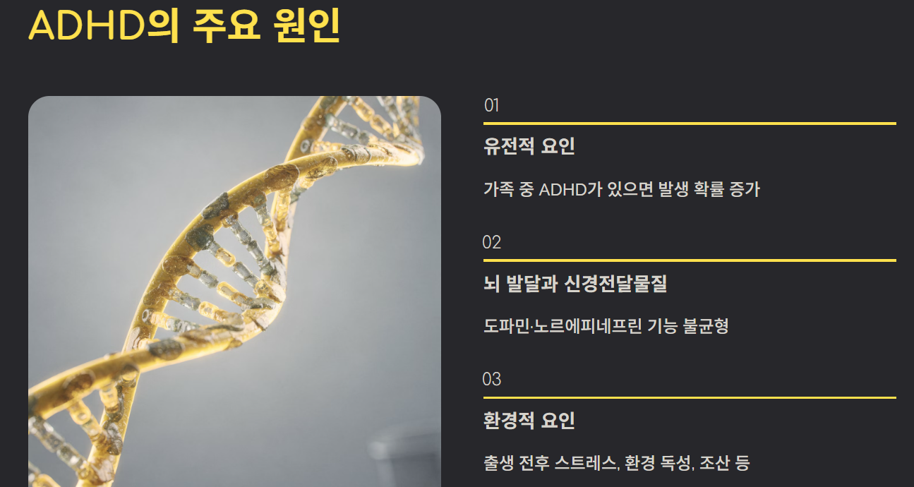 ADHD는 특정 원인 하나로 설명되기 어렵고, 여러 요인이 작용합니다.