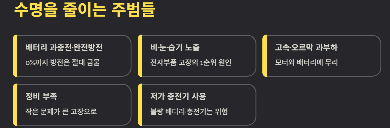6. 전기자전거 수명을 줄이는 주요 원인