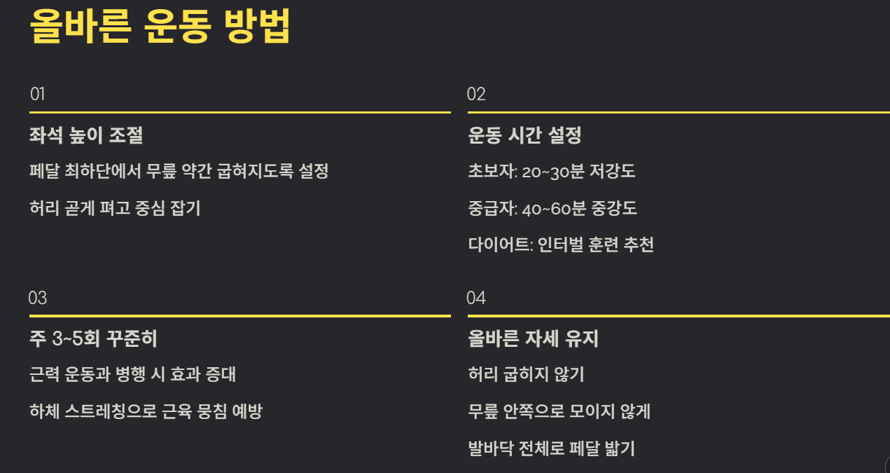 실내에서 비용 부담 없이 꾸준히 운동할 수 있는 실내자전거는 남녀노소 누구나 시작하기 쉬운 유산소 운동으로 자리 잡았습니다. 다이어트·체력 향상·관절 운동 등 다양한 장점이 있어 많은 사람들이 선택하는 운동이지만, 실제로 어떤 효과가 있는지, 얼마나 해야 제대로 도움이 되는지 궁금해하는 분들이 많습니다.