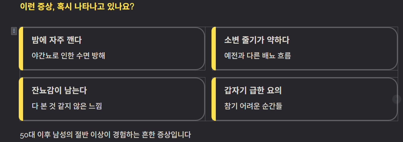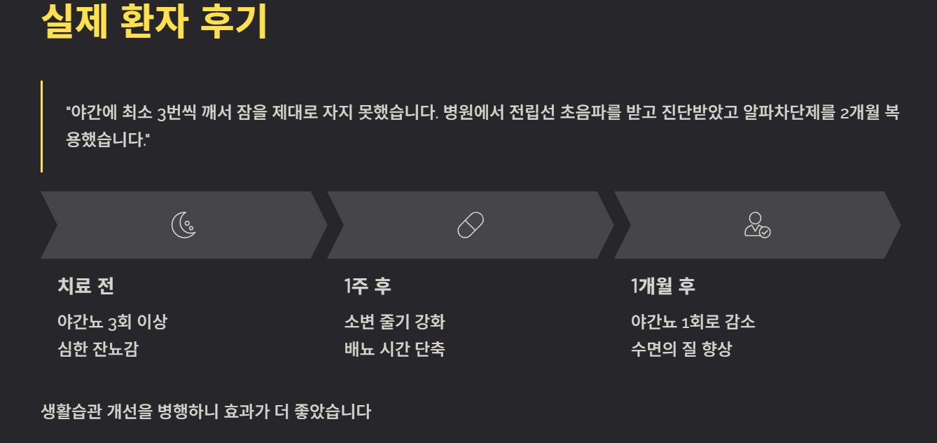 실제 전립선비대증 환자 후기에서 공통적으로 등장하는 내용은 다음과 같다.
