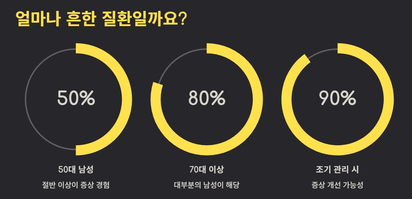 전립선비대증은 초기에는 미세한 증상으로 시작되지만 점점 생활을 방해하는 강도로 커질 수 있다.