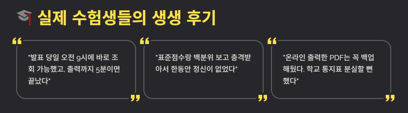 많은 수험생들이 “온라인 조회 + 출력”을 활용해, 휴대폰/USB 저장뿐만 아니라 인쇄본까지 확보해 두는 경우가 많았습니다.