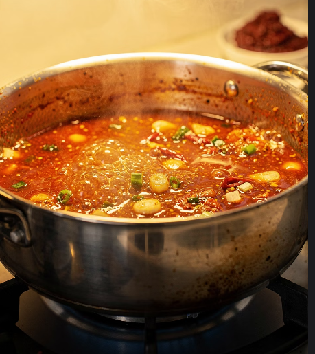 - 냄비에 고추장, 식초, 간장, 설탕을 넣고 중약불로 천천히 저어줍니다.