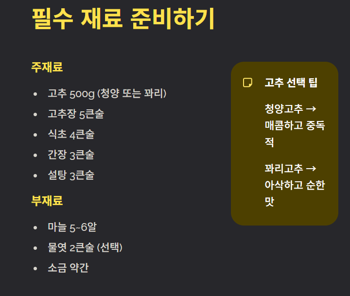 고추장아찌 만드는 법을 가장 정확하고 간단하게, 그리고 초보자도 실패 없이 따라 할 수 있도록 단계별로 소개합니다. 실제로 만들어 본 후기까지 정리했으니 끝까지 참고해 보세요.