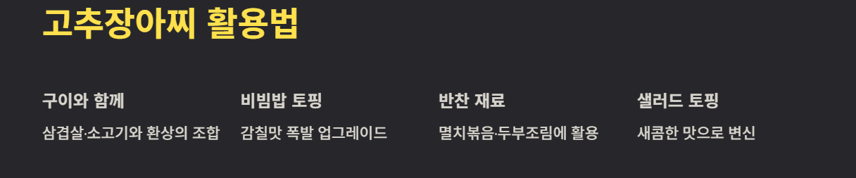 고추장아찌는 단순히 반찬으로만 먹기엔 아까울 정도로 활용 폭이 넓습니다.
