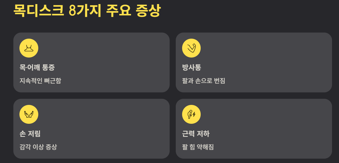 목디스크의 대표적인 증상 8가지와 함께, 사용자 후기, 완화 및 관리 방법, 그리고 예방 팁까지 자세히 알려드릴께요
