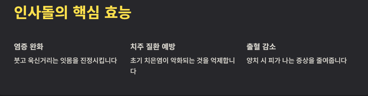 2. 인사돌의 핵심 효능 – 잇몸 염증 완화