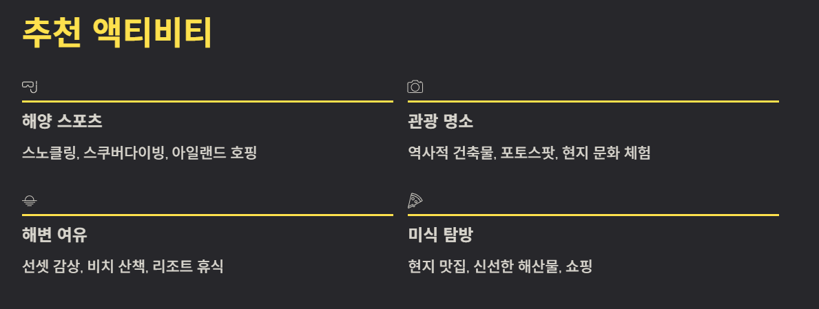 6. 여행 활동 추천 — 바다 + 관광 + 여유