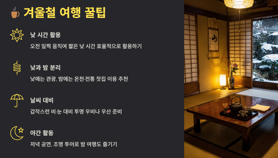 8. ☕ 겨울철 여행 팁