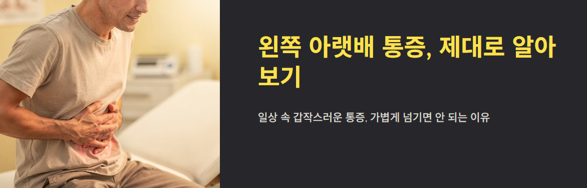 일상생활 중 갑자기 느껴지는 왼쪽 아랫배 통증은 가볍게 넘기기 쉽지만, 원인에 따라서는 반드시 주의가 필요한 신호일 수 있습니다. 단순한 소화 문제부터 장, 비뇨기계, 여성·남성 생식기 질환까지 다양한 가능성이 존재하기 때문에 증상을 정확히 이해하는 것이 중요합니다.