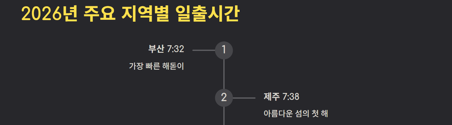 주요 지역 1월 1일 일출시간 예시